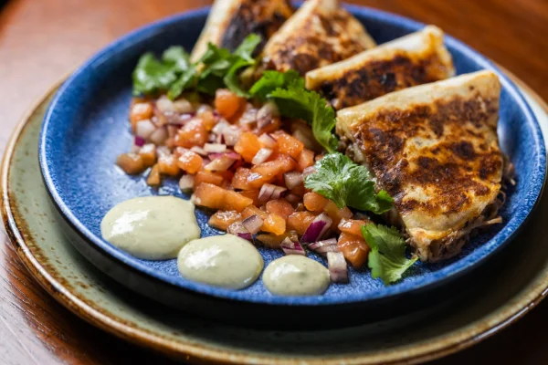 NUEVO Quesadillas de Costilla asada con salsa verde y Pico de gallo