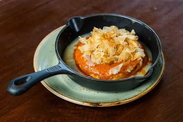 NUEVO Tortilla de Patatas salsa de Sobrasada compota de Manzana y Kasiobushi