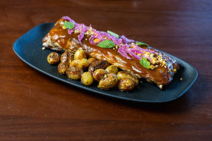 Pan chino relleno de Rabo de Toro con Miel de caña y salsa de Foie
