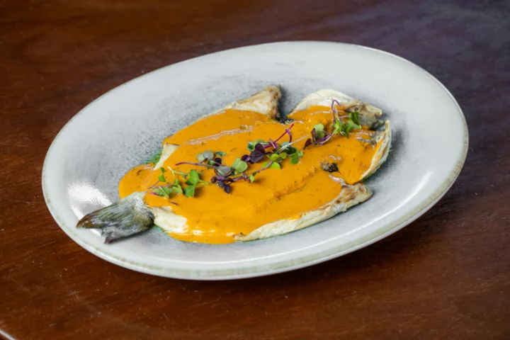 Lubina entera abierta con Salsa Vizcaina y Ensalada Verde