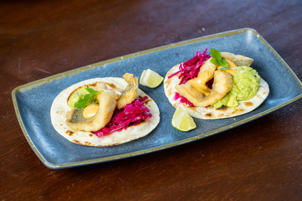 Taco de Lubina con Guacamole, Col Lombarda Encurtida y Mayo Chipotle
